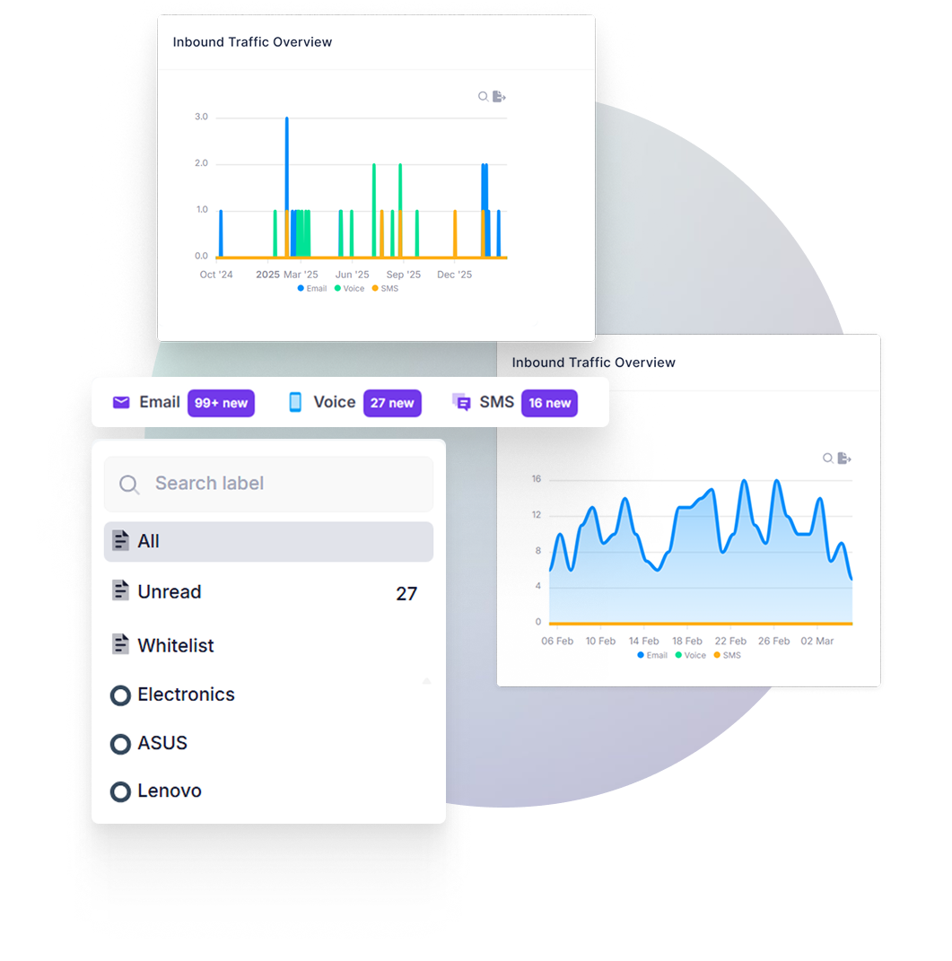 Apply labels to organize your work and tag contacts for investigation.